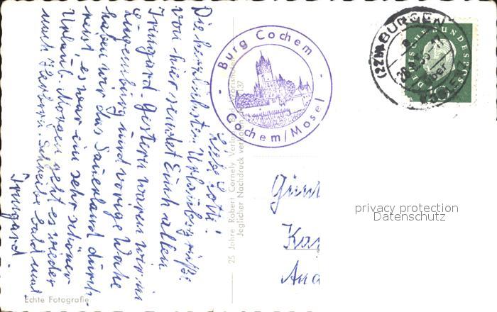 72405166 alte Postkarte Cochem Mosel Burg Panorama Mosel postalisch gelaufen Erhaltung siehe scans KatCode: 11110007135020