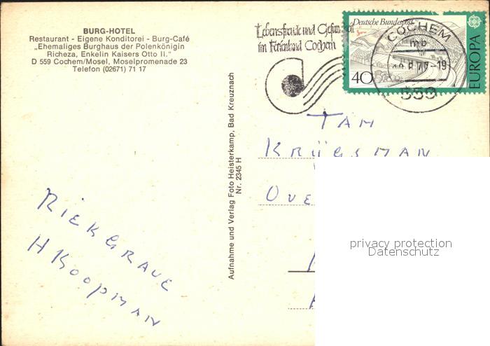 72108736 alte Postkarte Cochem Mosel Burghotel postalisch gelaufen KatCode: 11110007135020