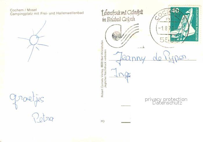 72855868 alte Postkarte Cochem Mosel Campingplatz Faehre Fliegeraufnahme postalisch gelaufen Erhaltung siehe scans [FriedD77] KatCode: 11110007135020