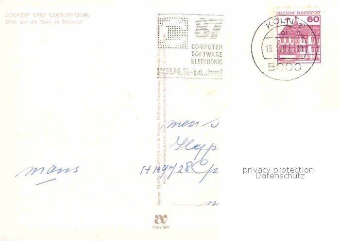 72638973 alte Postkarte Cochem Mosel Cochem Cond Moseltal postalisch gelaufen Erhaltung siehe scans [NatalD47] KatCode: 11110007135020