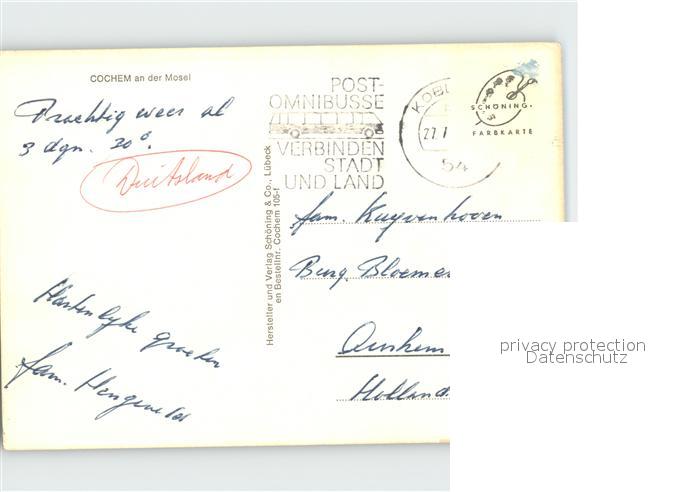72300559 alte Postkarte Cochem Mosel Fliegeraufnahme postalisch gelaufen Erhaltung siehe scans KatCode: 11110007135020