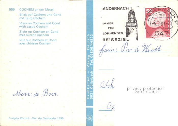 72255298 alte Postkarte Cochem Mosel Fliegeraufnahme postalisch gelaufen Erhaltung siehe scans KatCode: 11110007135020