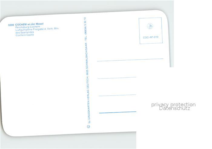 72300583 Cochem Mosel Fliegeraufnahme Reichsburg postalisch nicht gelaufen Erhaltung siehe scans KatCode: 11110007135020