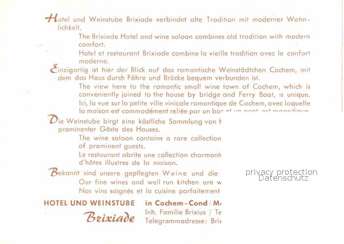 72890775 Cochem Mosel Hotel Brixiade postalisch nicht gelaufen Erhaltung siehe scans [AndreD76] KatCode: 11110007135020