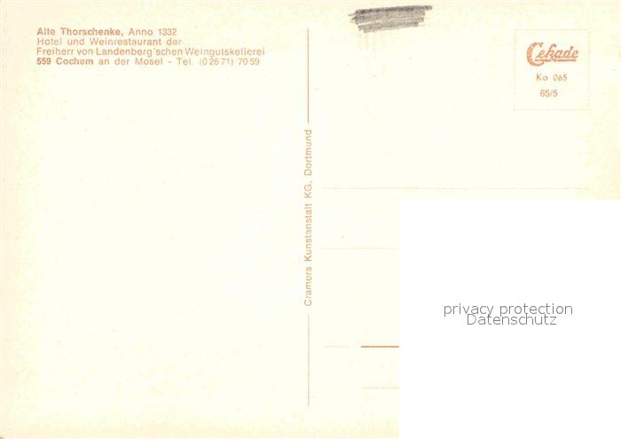 72847666 Cochem Mosel Hotel Restaurant Alte Thorschenke Burg Moselschleife Freiherr von Landenbergsche Weinguts-Kellerei Eller postalisch nicht gelaufen Erhaltung siehe scans [LiesaD40] KatCode: 11110007135020
