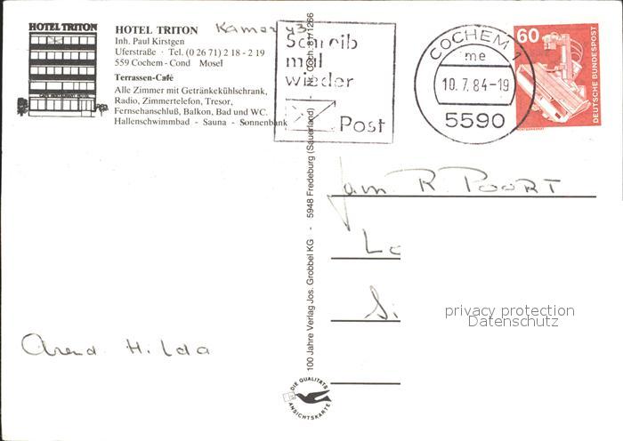 72254750 alte Postkarte Cochem Mosel Hotel Triton MS Undine postalisch gelaufen Erhaltung siehe scans KatCode: 11110007135020