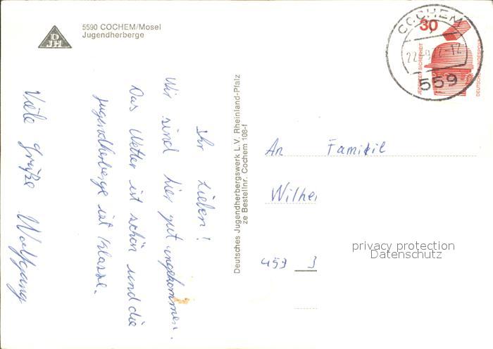 72036459 alte Postkarte Cochem Mosel Jugendherberge postalisch gelaufen Erhaltung siehe scans KatCode: 11110007135020
