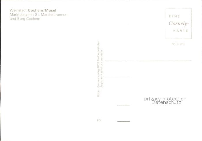 72051968 Cochem Mosel Marktplatz mit St. Martinsbrunnen und Burg Cochem postalisch nicht gelaufen Erhaltung siehe scans KatCode: 11110007135020