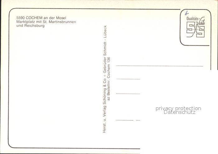 72231268 Cochem Mosel Marktplatz mit St Martinsbrunnen und Reichsburg postalisch nicht gelaufen Erhaltung siehe scans KatCode: 11110007135020