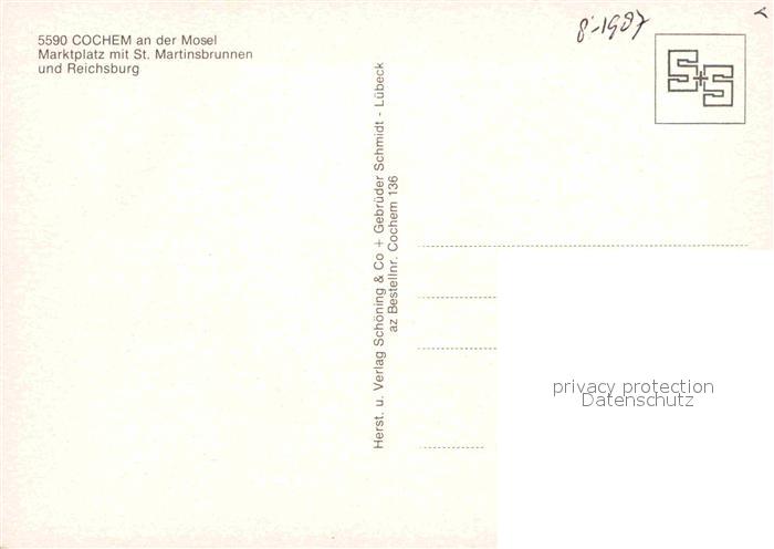 72736951 Cochem Mosel Marktplatz mit St Martinsbrunnen und Reichsburg Fachwerkhaeuser postalisch nicht gelaufen Erhaltung siehe scans [FriedD77] KatCode: 11110007135020