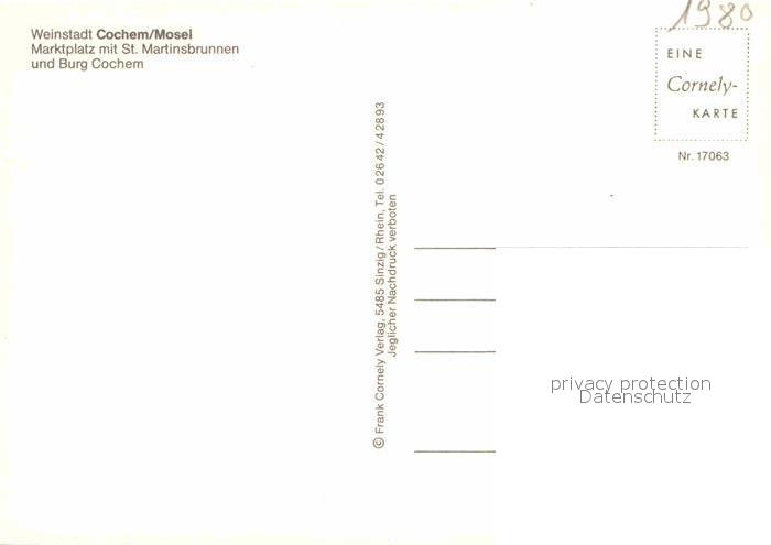 72887360 Cochem Mosel Marktplatz St. Martinsbrunnen und Burg postalisch nicht gelaufen Erhaltung siehe scans [LiesaD40] KatCode: 11110007135020