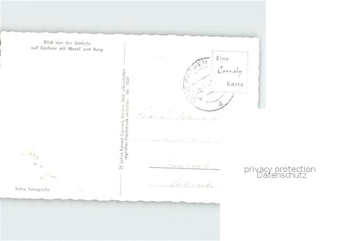 72077154 alte Postkarte Cochem Mosel mit Burg Blick von der Umkehr postalisch gelaufen KatCode: 11110007135020