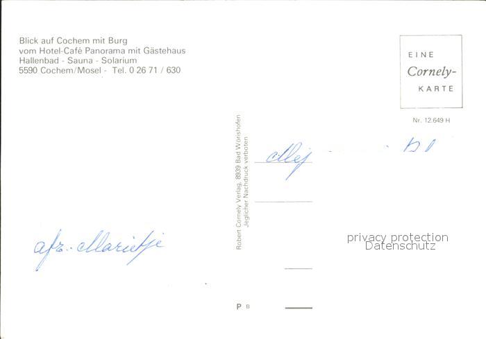 72921299 Cochem Mosel mit Burg Hotel-Cafe-Panorama postalisch nicht gelaufen Erhaltung siehe scans [LiesaD40] KatCode: 11110007135020
