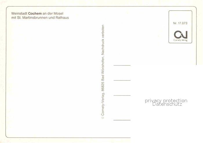 72854584 Cochem Mosel mit St. Martinsbrunnen und Rathaus postalisch nicht gelaufen Erhaltung siehe scans [LiesaD40] KatCode: 11110007135020