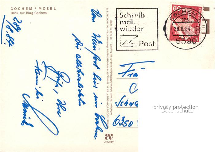 73244622 alte Postkarte Cochem Mosel Mosel mit Burg postalisch gelaufen Erhaltung siehe scans [LiesaD40] KatCode: 11110007135020