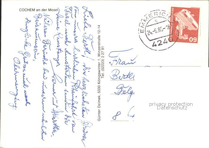 72177809 alte Postkarte Cochem Mosel Mosel mit Schiff postalisch gelaufen Erhaltung siehe scans KatCode: 11110007135020