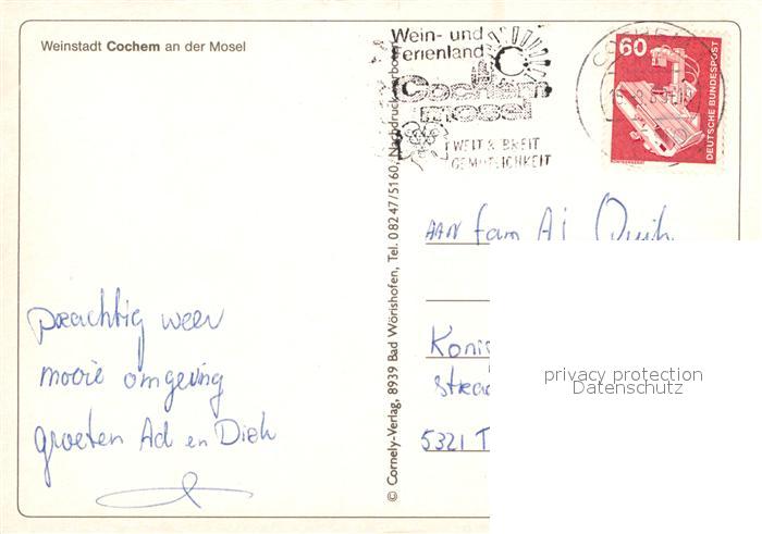 72929418 alte Postkarte Cochem Mosel Moselpartie postalisch gelaufen Erhaltung siehe scans [LiesaD40] KatCode: 11110007135020