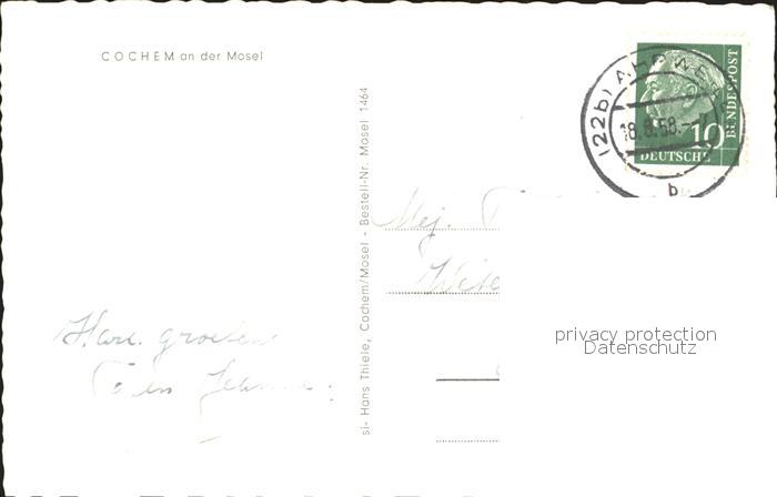 72200254 alte Postkarte Cochem Mosel Moselpartie postalisch gelaufen Erhaltung siehe scans KatCode: 11110007135020