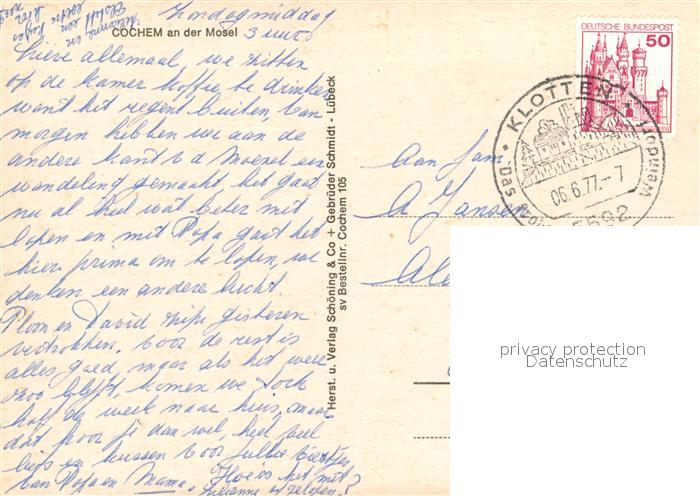 73311763 alte Postkarte Cochem Mosel Moselpartie postalisch gelaufen Erhaltung siehe scans [LiesaD40] KatCode: 11110007135020