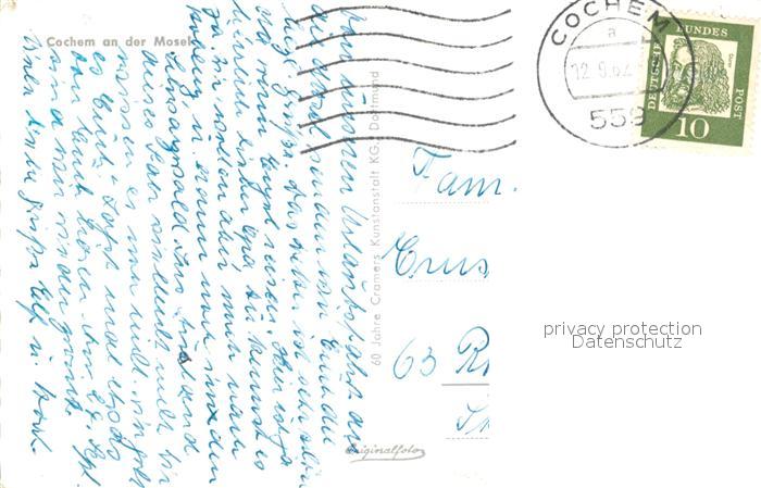73277158 alte Postkarte Cochem Mosel Moselpartie Fliegeraufnahme postalisch gelaufen Erhaltung siehe scans [LiesaD40] KatCode: 11110007135020