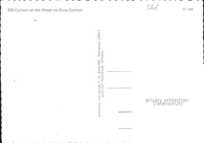 72608512 Cochem Mosel Moselpartie mit Burg postalisch nicht gelaufen Erhaltung siehe scans [LiesaD40] KatCode: 11110007135020