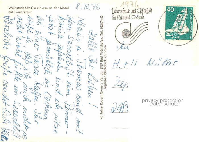 72887362 alte Postkarte Cochem Mosel Moselpartie mit Pinnerkreuz postalisch gelaufen Erhaltung siehe scans [LiesaD40] KatCode: 11110007135020