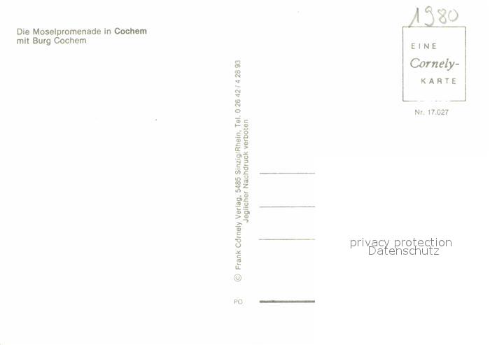 72887357 Cochem Mosel Moselpromenade mit Burg postalisch nicht gelaufen Erhaltung siehe scans [LiesaD40] KatCode: 11110007135020