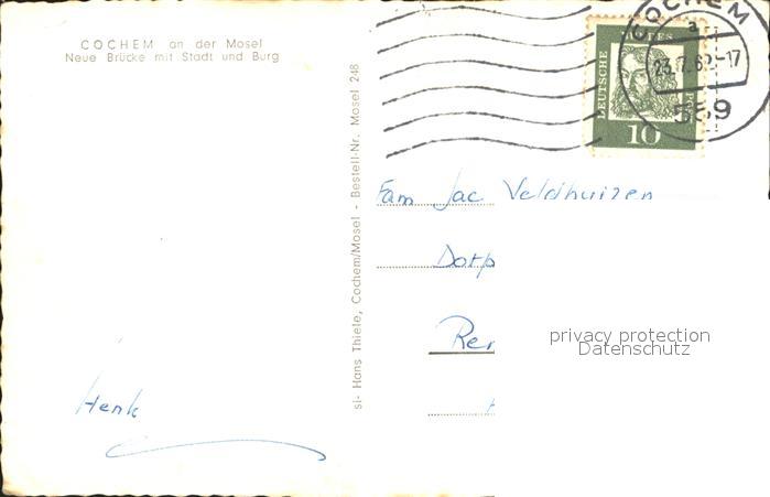 72023569 alte Postkarte Cochem Mosel Neue Bruecke Burg postalisch gelaufen Erhaltung siehe scans KatCode: 11110007135020