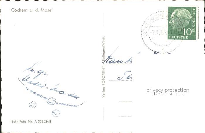 72062245 alte Postkarte Cochem Mosel Panorama postalisch gelaufen Erhaltung siehe scans KatCode: 11110007135020