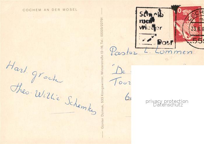 73306511 alte Postkarte Cochem Mosel Panorama postalisch gelaufen Erhaltung siehe scans [WerneD78] KatCode: 11110007135020