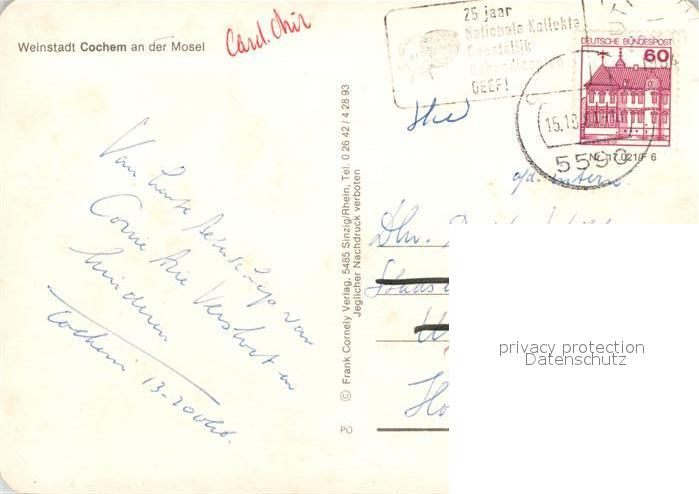 72932466 alte Postkarte Cochem Mosel Panorama postalisch gelaufen Erhaltung siehe scans [WerneD78] KatCode: 11110007135020