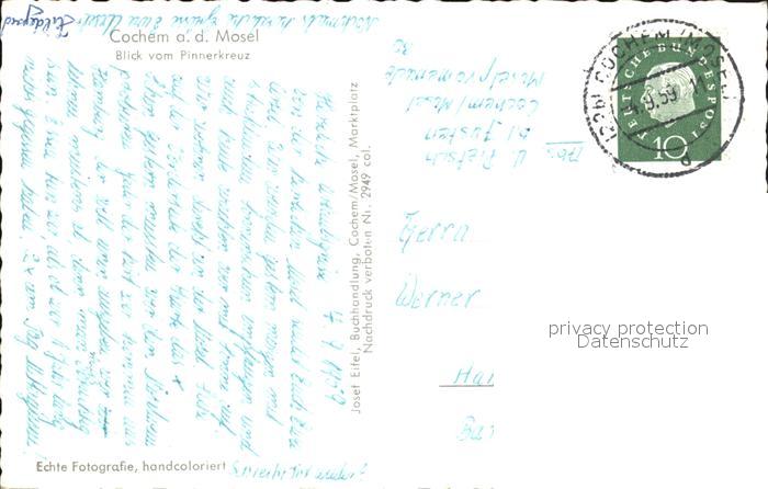 72433671 alte Postkarte Cochem Mosel Panorama Blick vom Pinnerkreuz postalisch gelaufen Erhaltung siehe scans KatCode: 11110007135020