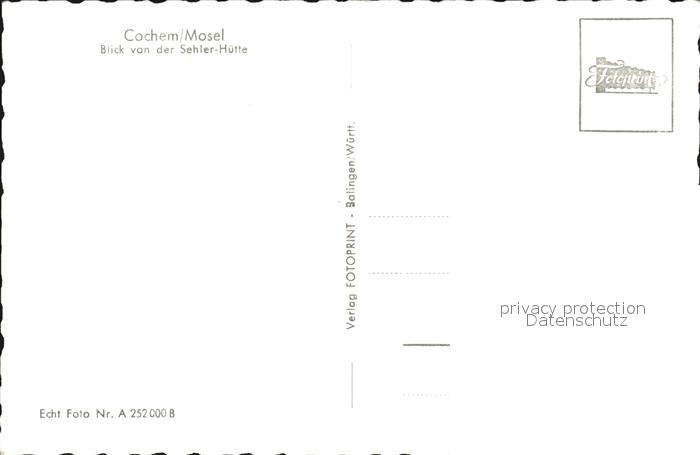 72403210 Cochem Mosel Panorama Blick von der Sehler Huette Reichsburg postalisch nicht gelaufen Erhaltung siehe scans KatCode: 11110007135020