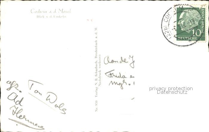 72453752 alte Postkarte Cochem Mosel Panorama Blick von der Umkehr Moseltal Reichsburg postalisch gelaufen Erhaltung siehe scans KatCode: 11110007135020
