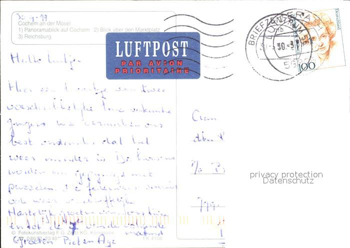 72394552 alte Postkarte Cochem Mosel Panorama Marktplatz Reichsburg postalisch gelaufen Erhaltung siehe scans KatCode: 11110007135020