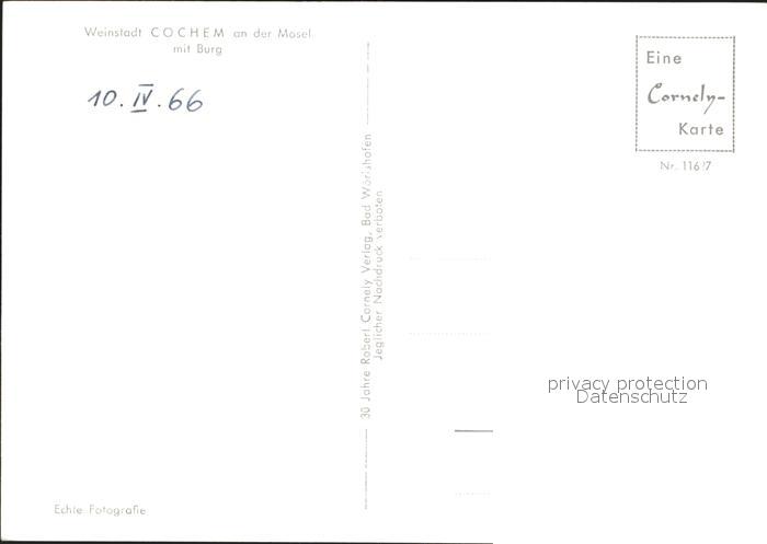 72250842 Cochem Mosel Panorama mit Burg postalisch nicht gelaufen Erhaltung siehe scans KatCode: 11110007135020