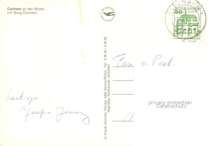 72935703 alte Postkarte Cochem Mosel Panorama mit Reichsburg Weinberge postalisch gelaufen Erhaltung siehe scans [FriedD77] KatCode: 11110007135020