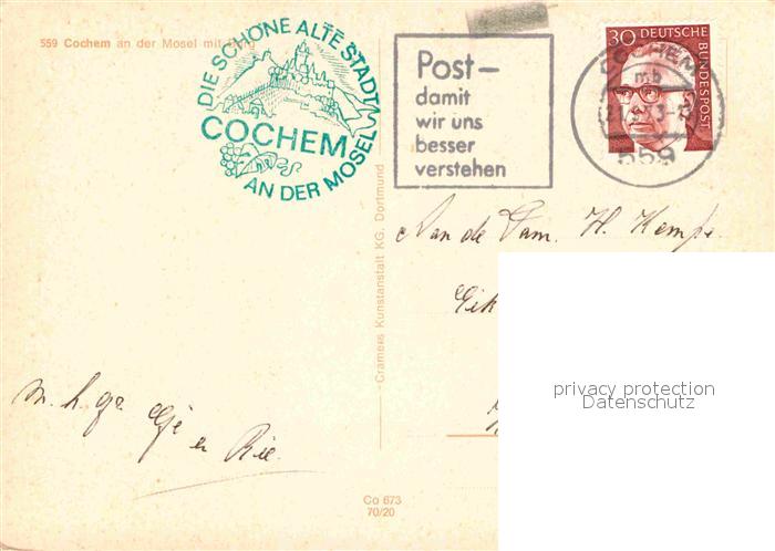 72914964 alte Postkarte Cochem Mosel Panorama mit Reichsburg postalisch gelaufen Erhaltung siehe scans [FriedD77] KatCode: 11110007135020