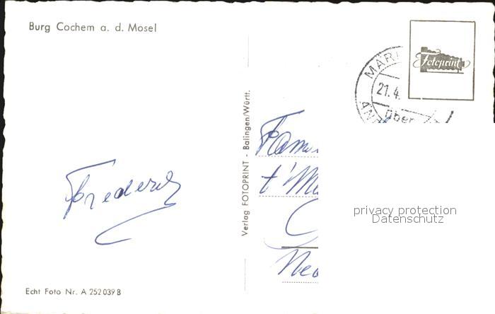 72403224 alte Postkarte Cochem Mosel Panorama Moseltal Reichsburg postalisch gelaufen Erhaltung siehe scans KatCode: 11110007135020