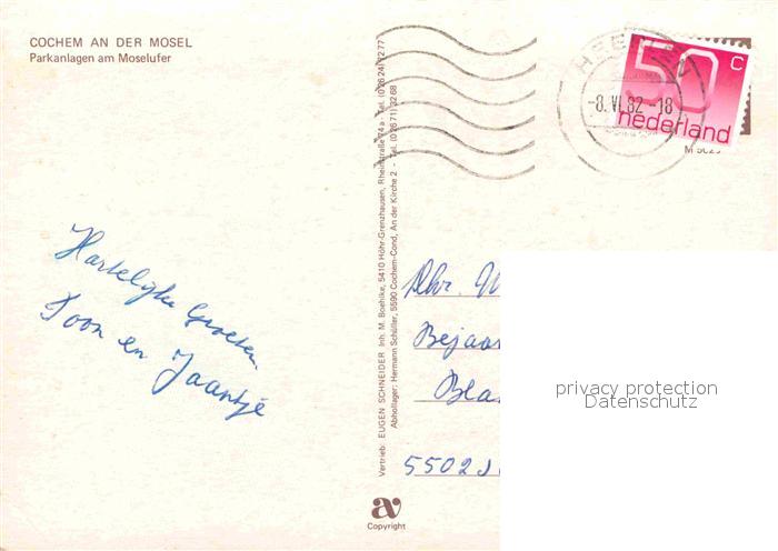 72865230 alte Postkarte Cochem Mosel Parkanlagen am Moselufer mit Reichsburg postalisch gelaufen Erhaltung siehe scans [FriedD77] KatCode: 11110007135020