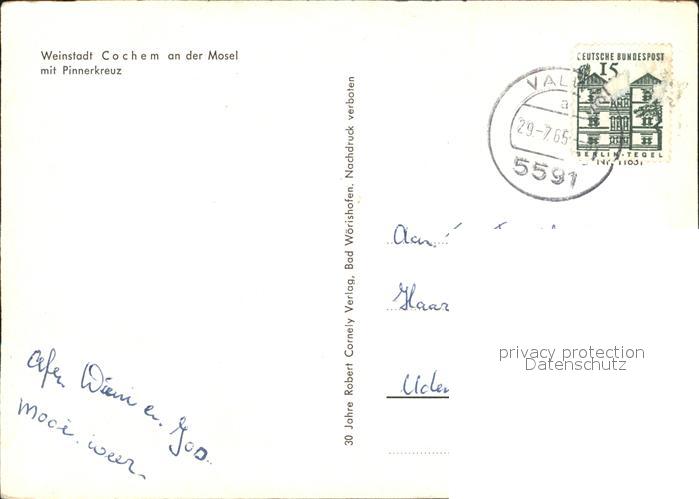 72607543 alte Postkarte Cochem Mosel Pinnenkreuz und Mosel postalisch gelaufen Erhaltung siehe scans [LiesaD40] KatCode: 11110007135020