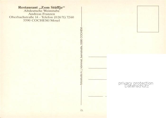 73780688 Cochem Mosel Restaurant Zom Stueffje Gastraeume postalisch nicht gelaufen Erhaltung siehe scans [WerneD78] KatCode: 11110007135020