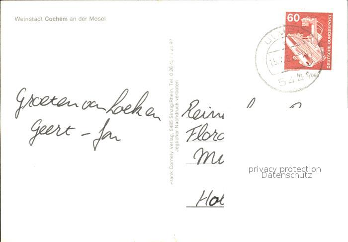 72223493 alte Postkarte Cochem Mosel Schloss postalisch gelaufen Erhaltung siehe scans KatCode: 11110007135020