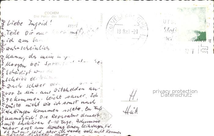 72419395 alte Postkarte Cochem Mosel Schloss Moselpartie postalisch gelaufen Erhaltung siehe scans KatCode: 11110007135020