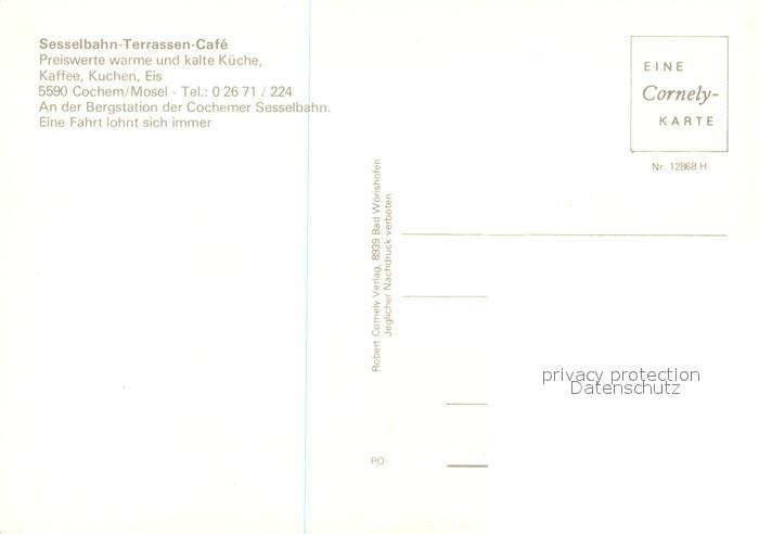 73100970 Cochem Mosel Sesselbahn Terrassen Cafe Gastraum postalisch nicht gelaufen Erhaltung siehe scans [WerneD78] KatCode: 11110007135020