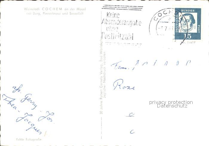 72174930 alte Postkarte Cochem Mosel Sessellift postalisch gelaufen Erhaltung siehe scans KatCode: 11110007135020