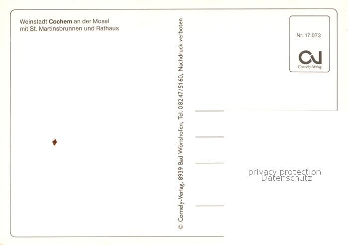 73175907 Cochem Mosel St. Martinsbrunnen Rathaus postalisch nicht gelaufen Erhaltung siehe scans [PaolaD17] KatCode: 11110007135020