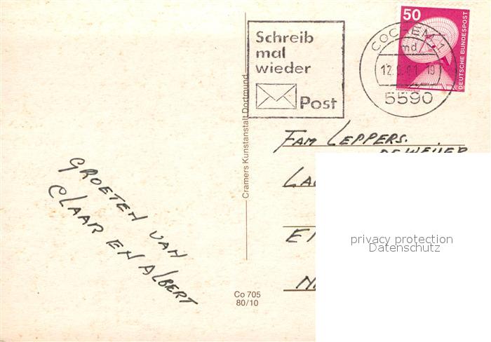 72930936 alte Postkarte Cochem Mosel Teilansicht Kirche postalisch gelaufen Erhaltung siehe scans [WerneD78] KatCode: 11110007135020