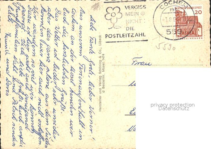 72356792 alte Postkarte Cochem Mosel Teilansichten Burg Moseltal postalisch gelaufen Erhaltung siehe scans KatCode: 11110007135020