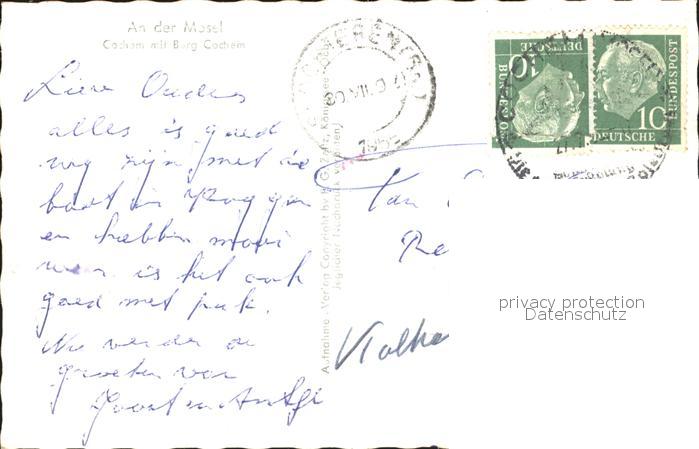 72081837 alte Postkarte Cochem Mosel Uferpartie am Fluss mit Blick zur Reichsburg postalisch gelaufen Erhaltung siehe scans KatCode: 11110007135020